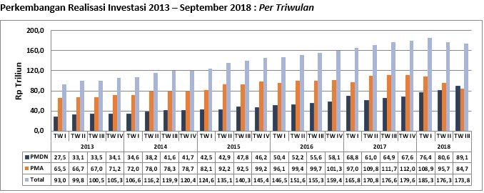 Realisasi investasi PMA dan PMDN Januari – September 2018 Naik 4,3%,