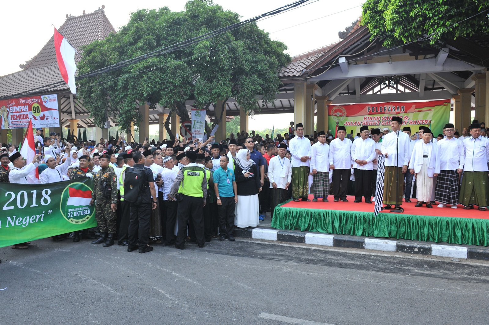 Kenakan Sarung dan Berpeci, Presiden Jokowi Lepas Jalan Sehat Sahabat Santri