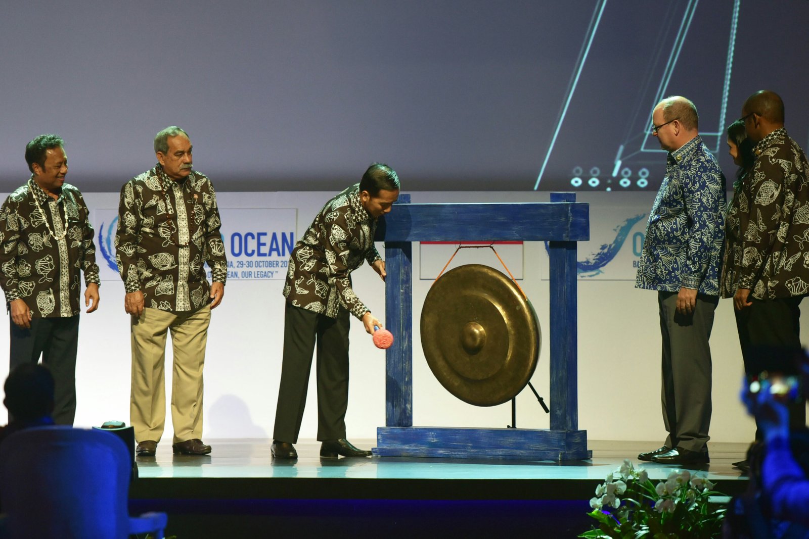 Presiden Jokowi membuka Our Ocean Conference (OOC) 2018, di BNDCC, Kabupaten Badung,…