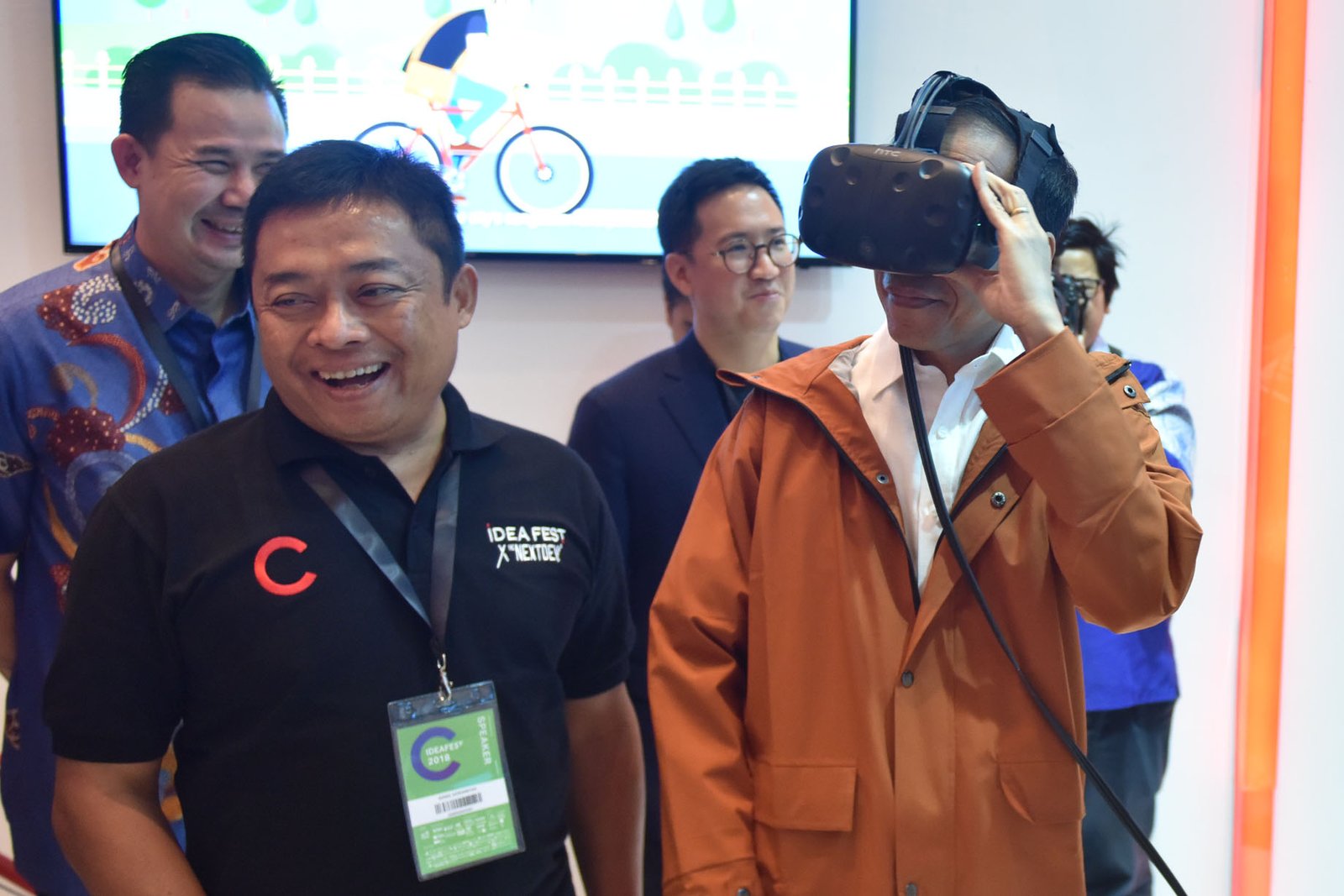 Presiden Jokowi mencoba produk yang ditampilkan dalam IdeaFest 2018, di JCC, Jakarta,…