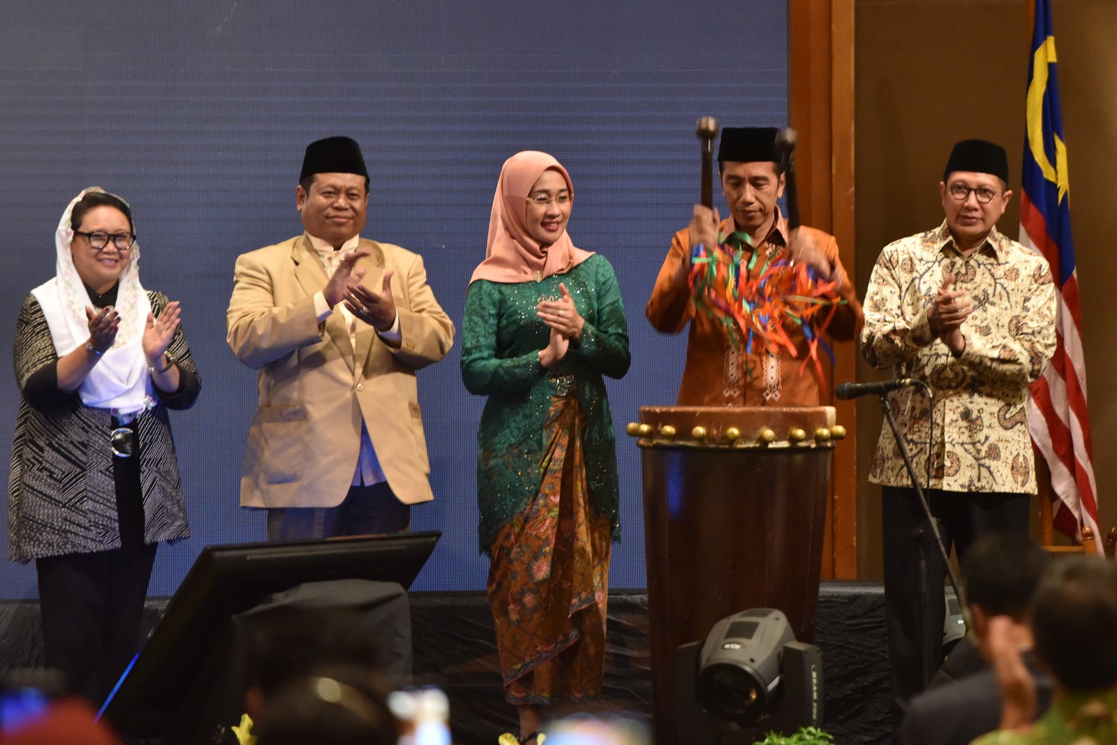 Presiden Jokowi memukul bedug sebagai tanda pembukaan the International Young Muslim Women…