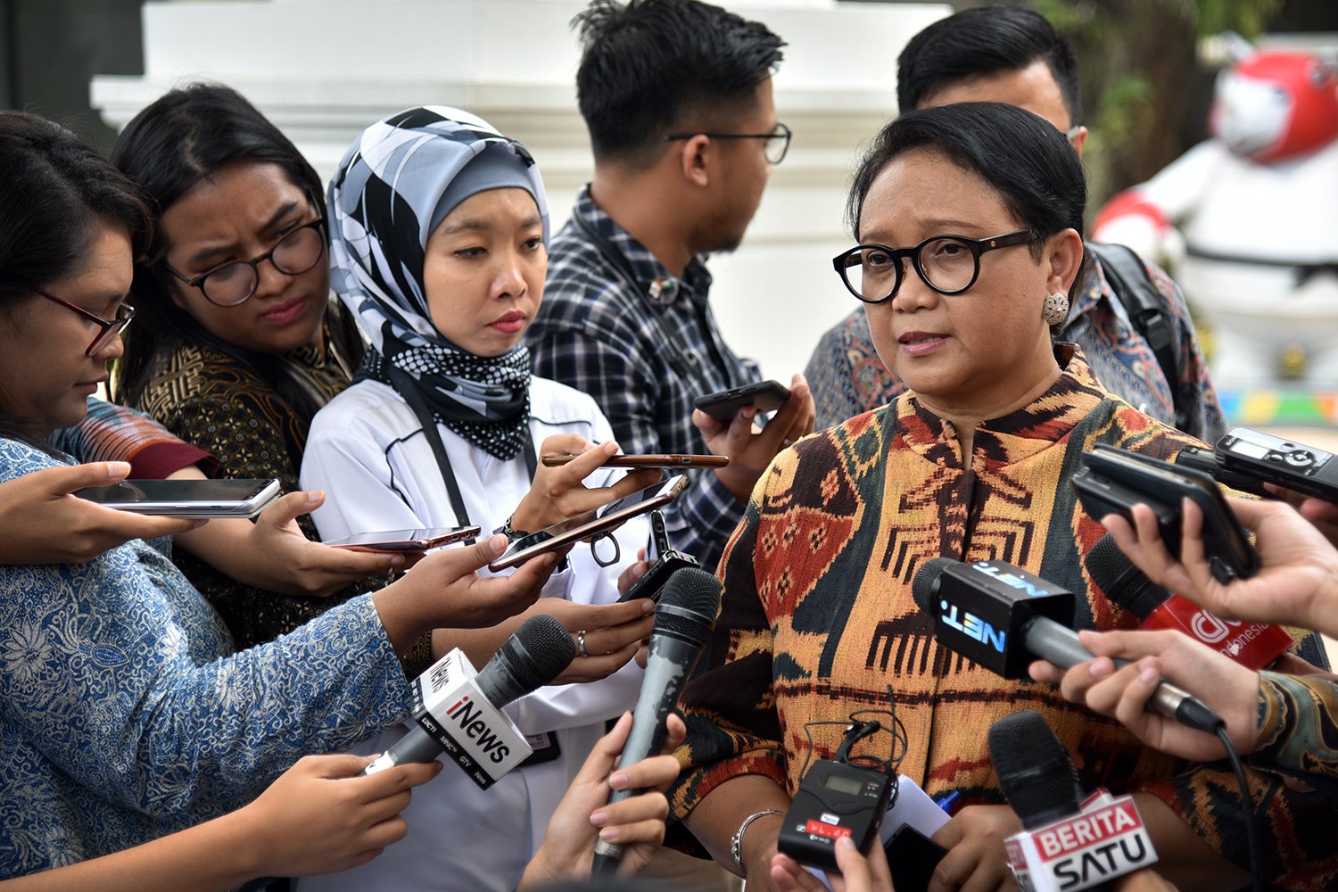 Menlu Retno Marsudi menjelaskan hasil pertemuan Menlu Palestina Riyad al-Maliki dengan Presiden…