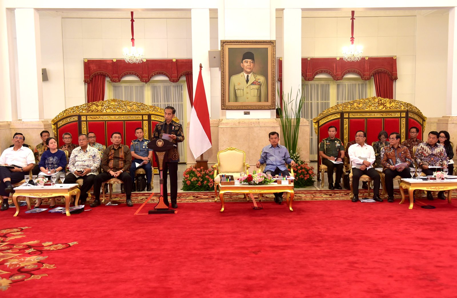 Presiden Jokowi menyampaikan pengantar pada Sidang Kabinet Paripurna, di Istana Negara, Jakarta,…
