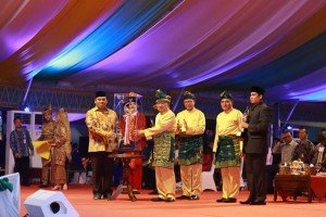 Wakil Presiden Jusuf Kalla menyerahkan piala juara umur MTQ Nasional XXVII kepada…
