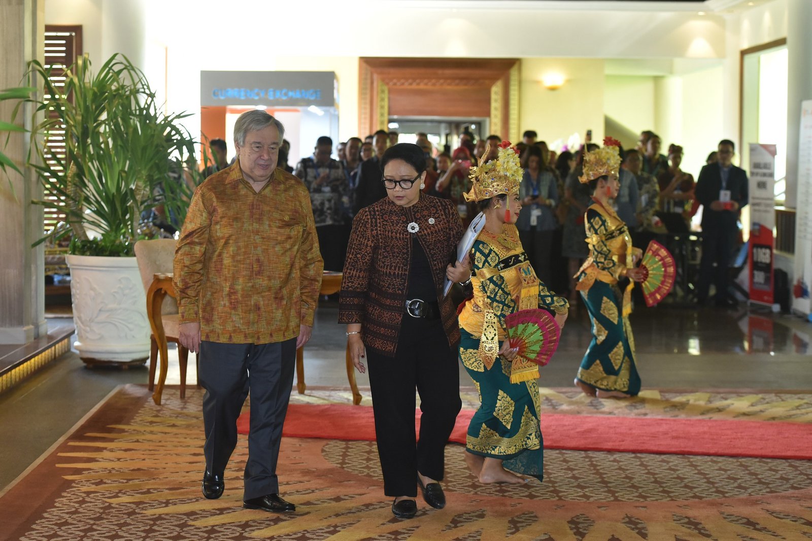 Menlu Retno Marsudi mendampingi Sekjen PBB Antonio Guteres saat akan bertemu Presiden…