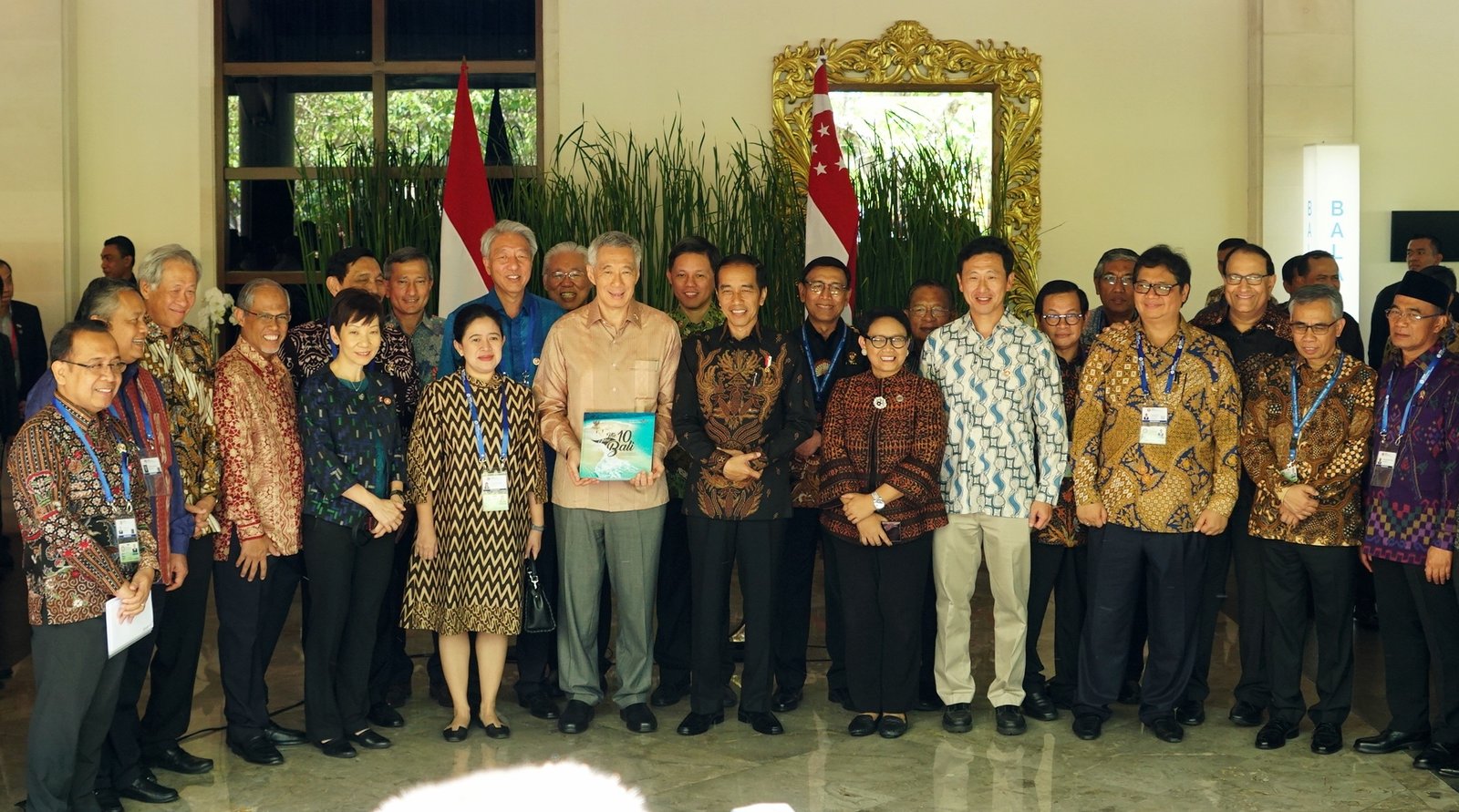Presiden Jokowi dan PM Singapura Lee Hsien Loong berfoto bersama delegasi kedua…