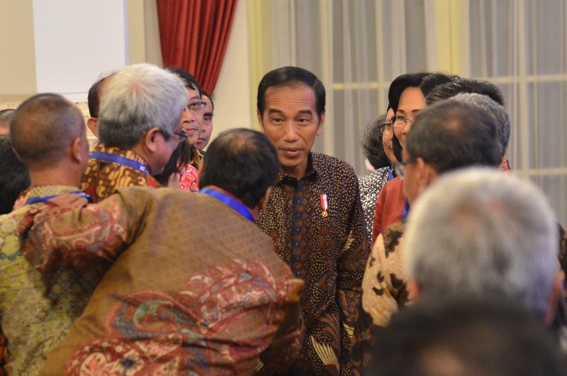 Presiden Jokowi berbincang dengan para pejabat eselon I dan II PTN dan…