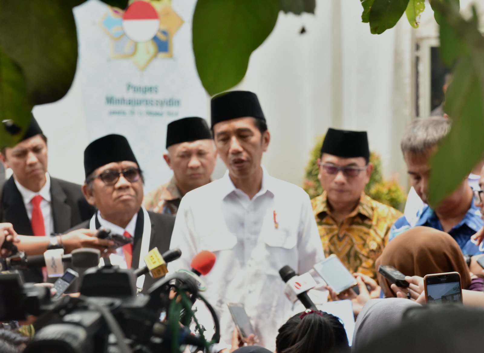 Presiden Jokowi menjawab wartawan usai membuka Rakernas LDII, di Pondok Pesantren Minhajurrosyidin,…
