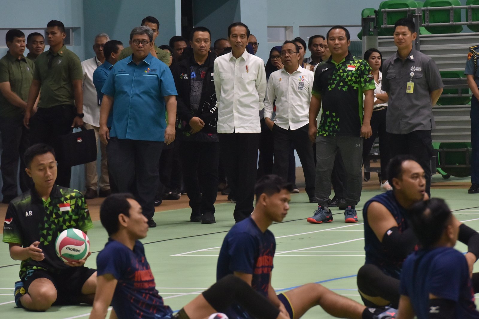 Ketua INAPGOC Raja Sapta Oktohari (paling kiri) mendampingi Presiden Jokowi meninjau atlet…