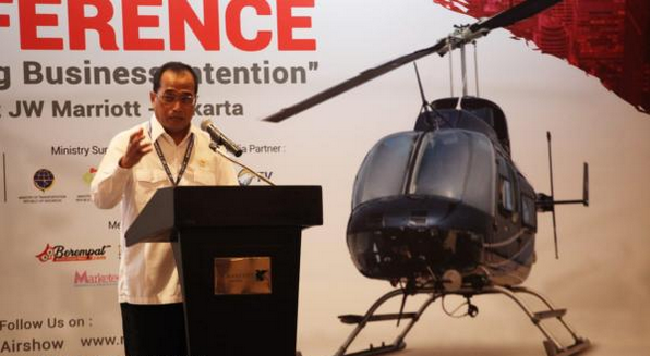 Menhub Budi K. Sumadi saat berbicara pada acara Rotary Wing Indonesia Conference…