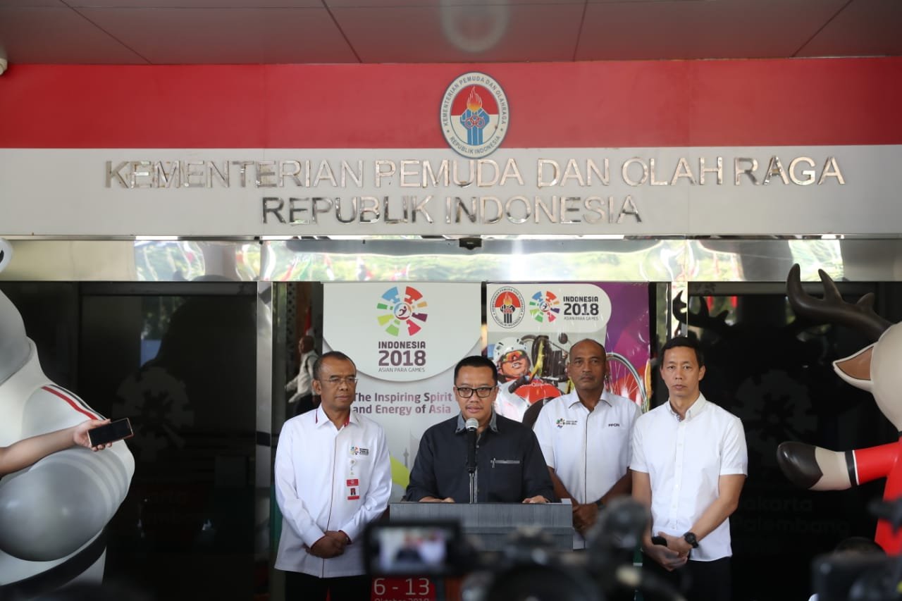Menpora Imam Nahrawi menyampaikan keterangan pers di Kantor Kemenpora, Jakarta, Selasa (25/9)…