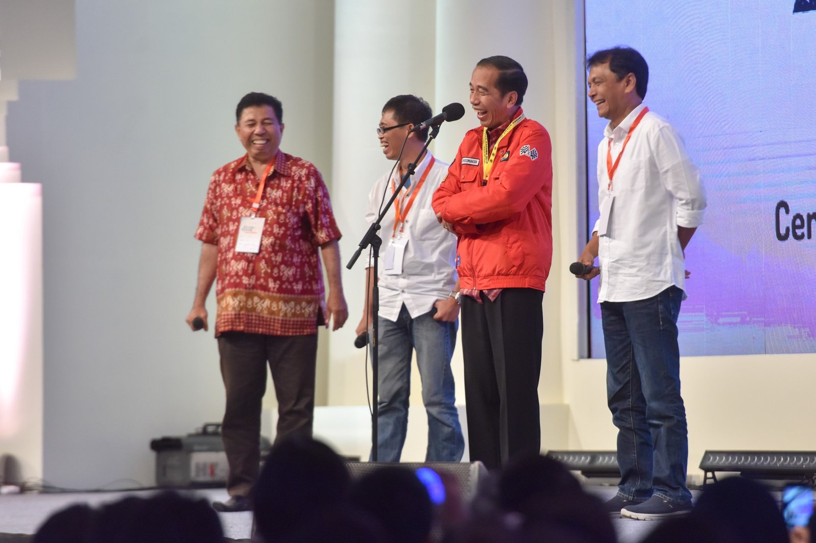 Presiden Jokowi tidak bisa menahan tawa saat berdialoh dengan alumni Kagama, di…