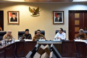 Mendikbud Muhadjir Effendy mendampingi KSP Moeldoko pada konperensi pers di Bina Graha,…