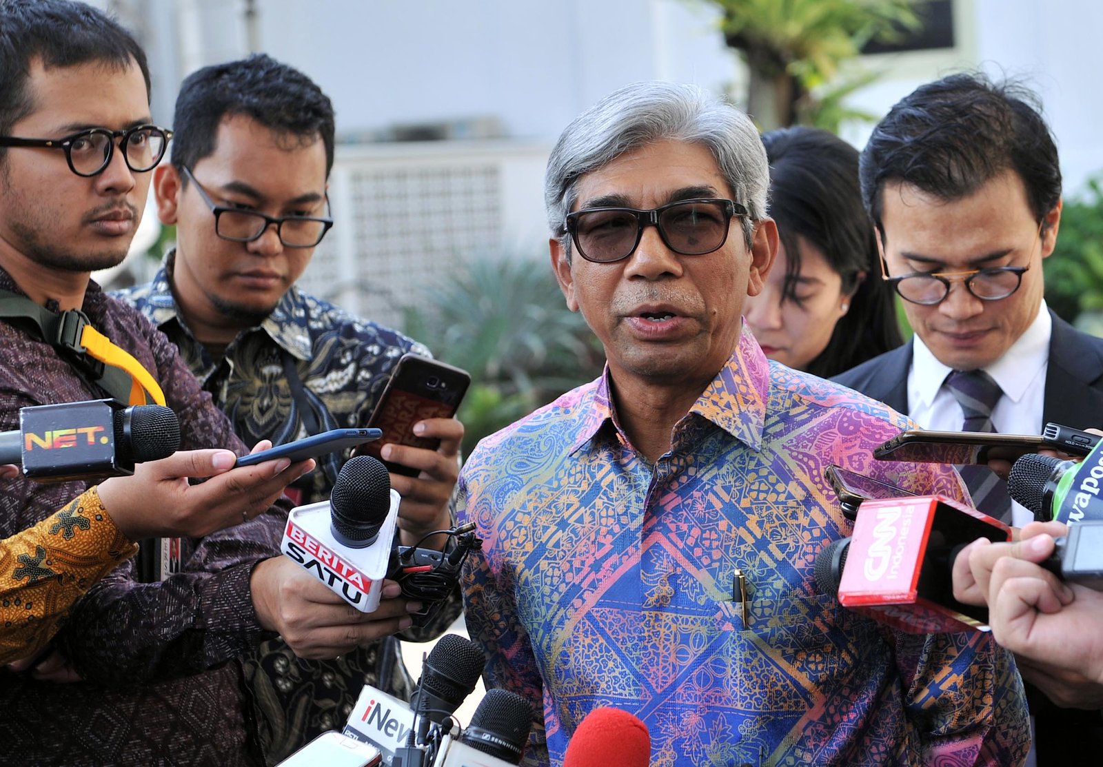 Wakil Menli AM. Fachir menjawab wartawan usai mendampingi Presiden Jokowi menerima delegasi…