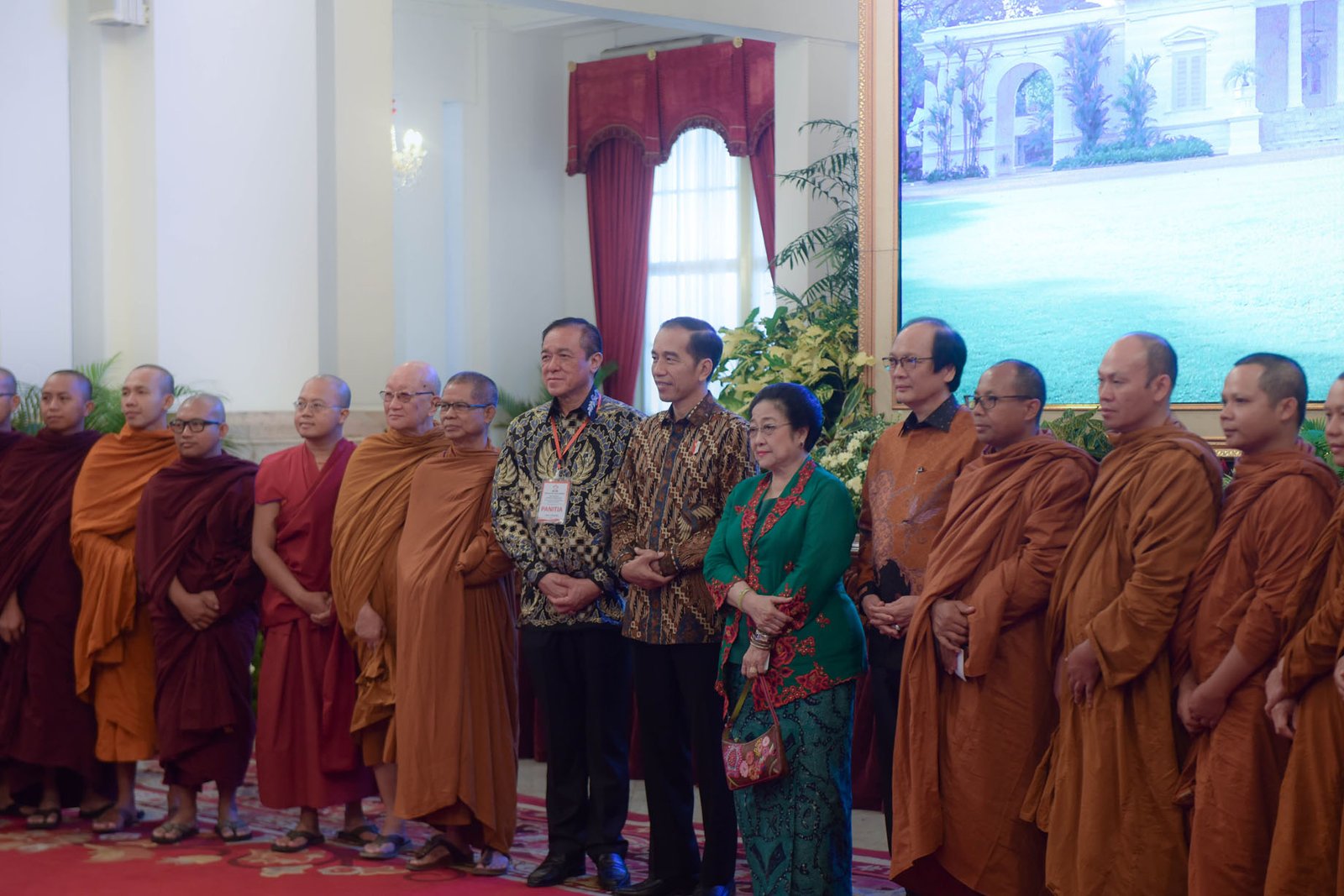Presiden Jokowi didampingi Megawati dan Ketua Umum Permabudhi berfoto bersama peserta Munas…