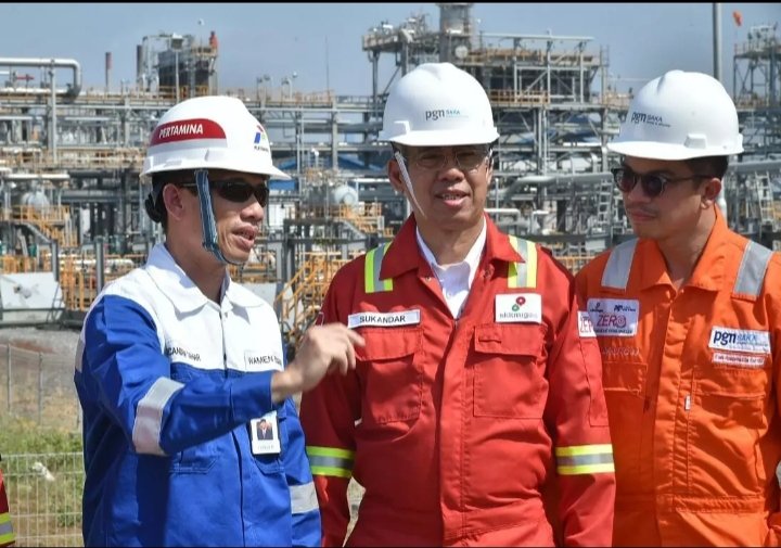 Wamen ESDM saat meninjau fasilitas kilang minyak ke Gresik, Jawa Timur, Sabtu…