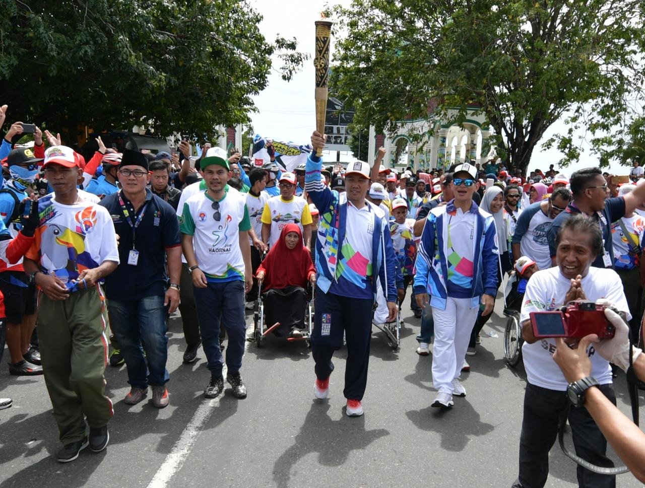 Meriahkan Puncak Haornas 2018, Menpora Awali Pawai Obor Asian Para Games Keliling Kota Ternate