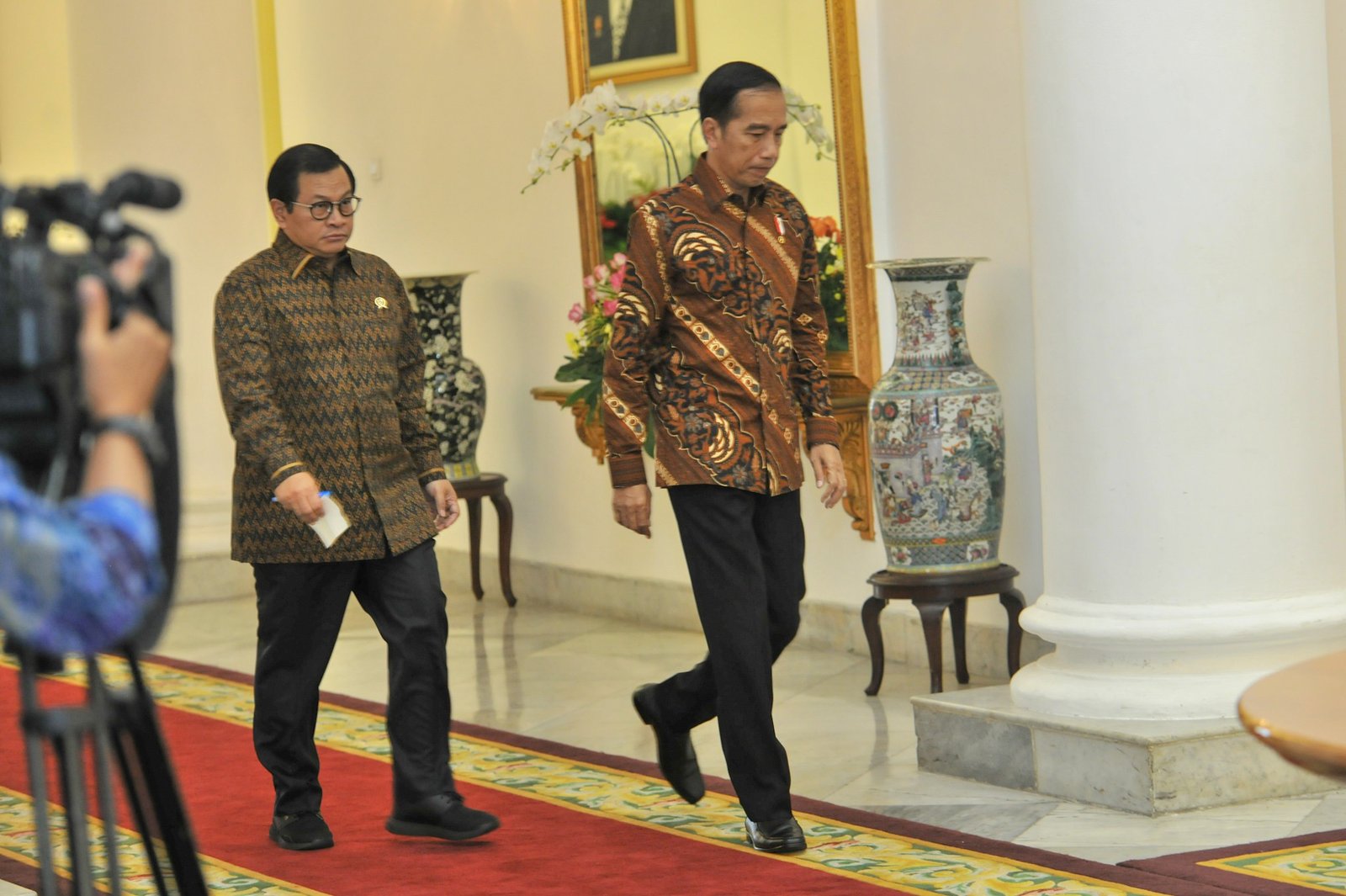 Presiden Jokowi didampingi Seskab Pramono Anung menuju ruang rapat terbatas, di…