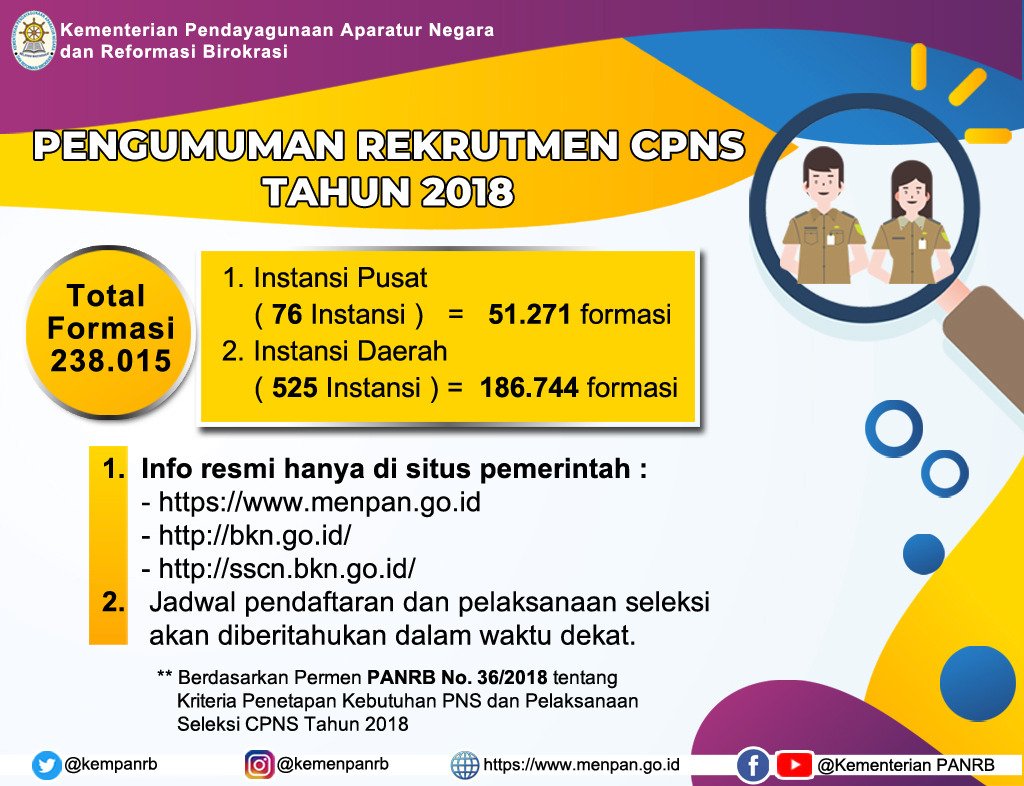 Pemerintah membuka lowongan 238.015 formasi Calon Pegawai Negeri Sipil (CPNS) untuk pengadaan…