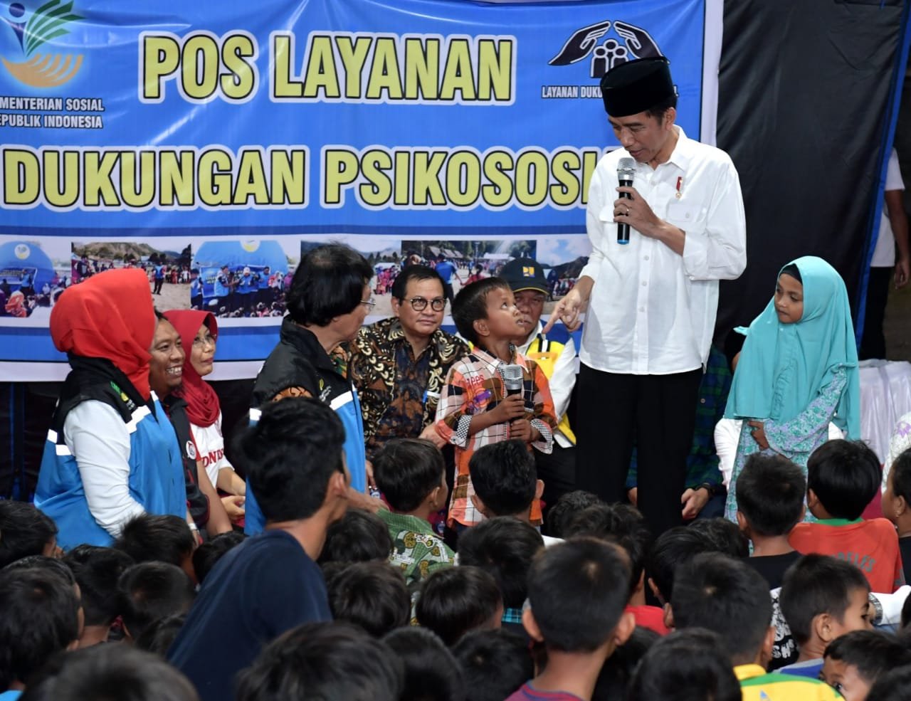 Presiden saat menghibur anak-anak korban gempa korban gempa di Kecamatan Gunung Sari,…