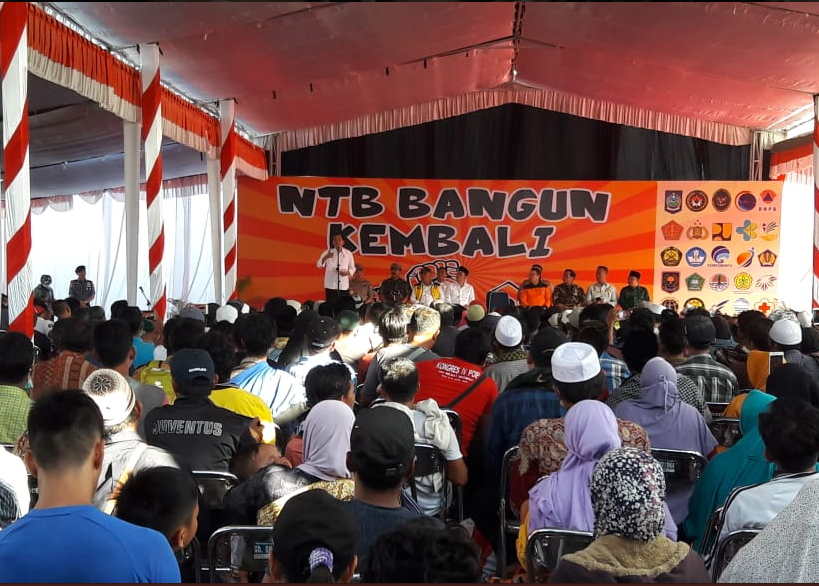 Presiden Jokowi memberikan sambutan pada acara penyerahan bantuan untuk renovasi rumah korban…