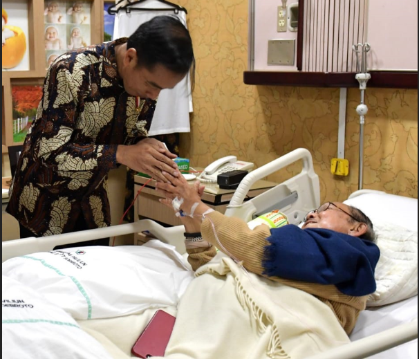 Presiden Jokowi menjenguk Presiden ke-3 RI BJ. Habibie, yang sedang dirawat di…