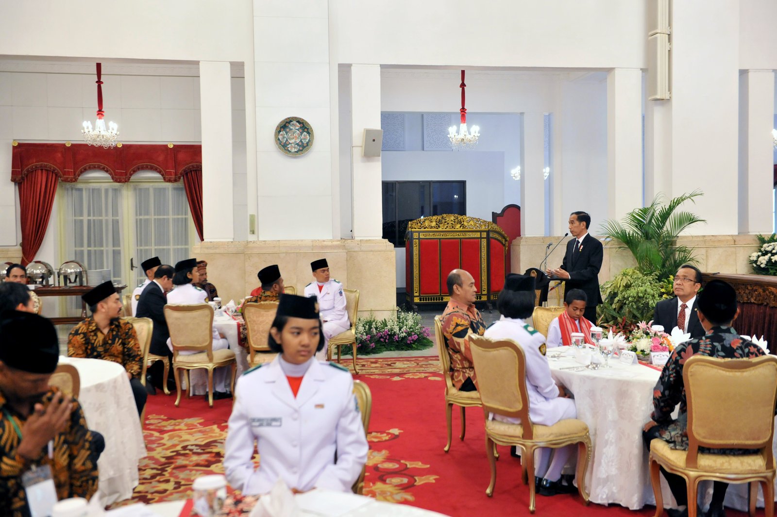 Presiden Jokowi saat bersilaturahim dengan Teladan Nasional, Pasukan Pengibar Bendera Pusaka, dan…