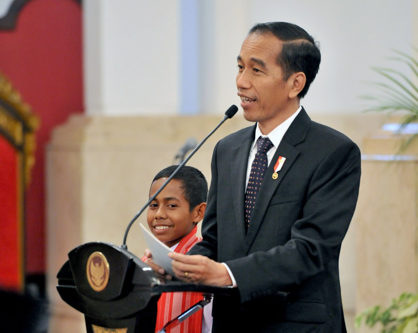Presiden berdialog dengan Joni, siswa kelas 1 SMP Negeri Silawan, Kabupaten Belu,…
