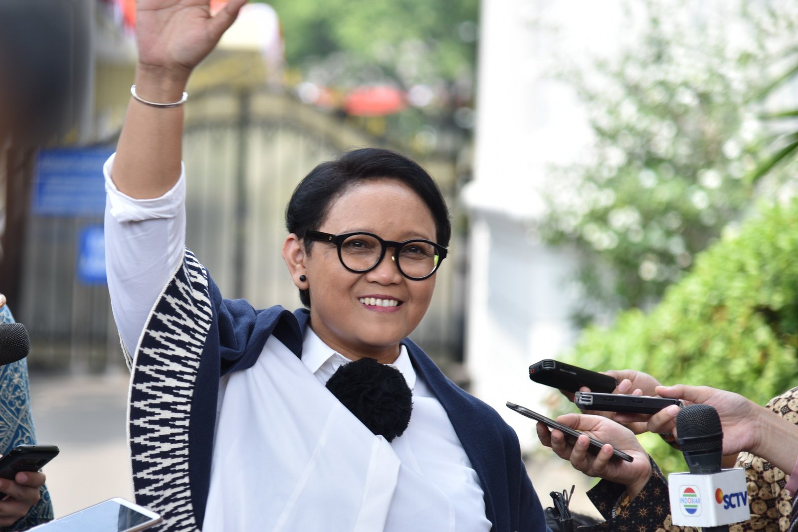 Menlu Retno Marsudi menjawab wartawan usai mendampingi Presiden Jokowi menerima Ketua Olimpiade…