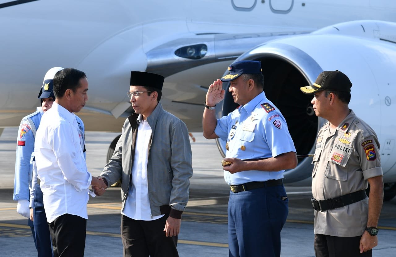 Gubernur TGB Zainul Majdi menyambut kedatangan Presiden Jokowi di Bandara Lombok, Senin…