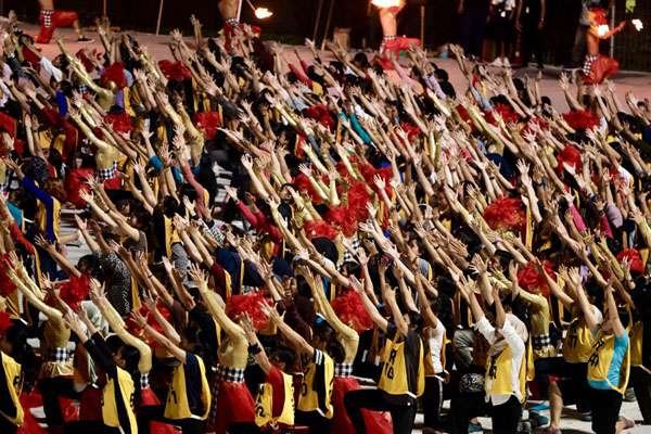 Ribuan penari dilibatkan dalam geladi resik pembukaan Asian Games XVIII, di Jakarta,…