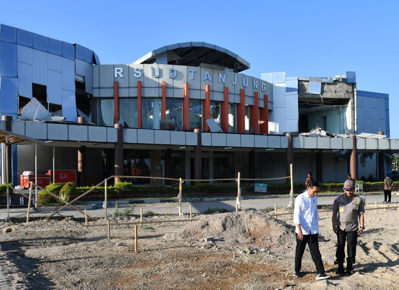 Presiden meninjau RSUD Tanjung Kabupaten Lombok Utara, NTB, Selasa (14/8) pagi. (Foto:…