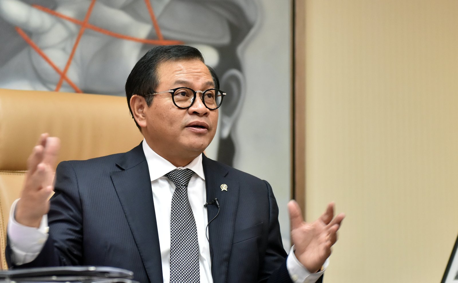 Seskab Pramono Anung berbicara tentang kenangannya saat menjadi aktivis Pramuka, di ruang…