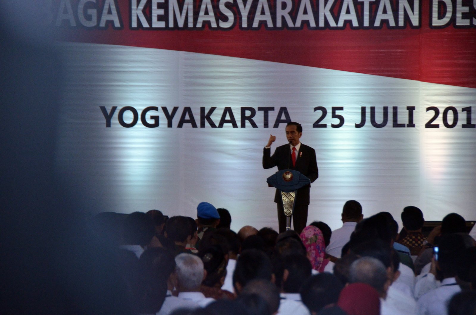 Presiden saat memberikan sambutan dalam acara Peningkatan Kapasitas Pemerintahan Desa dan Lembaga…