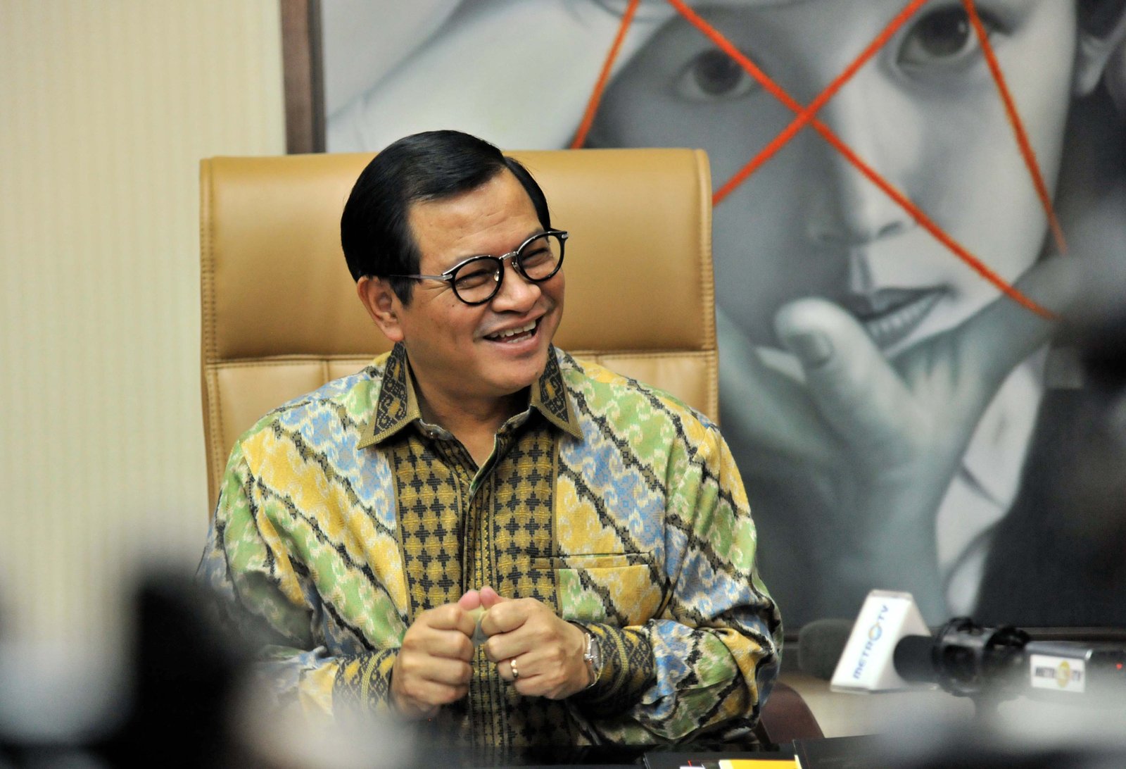 Sambil tersenyum, Seskab menjawab pertanyaan wartawan di ruang kerjanya, Jakarta, Rabu (25/7).…