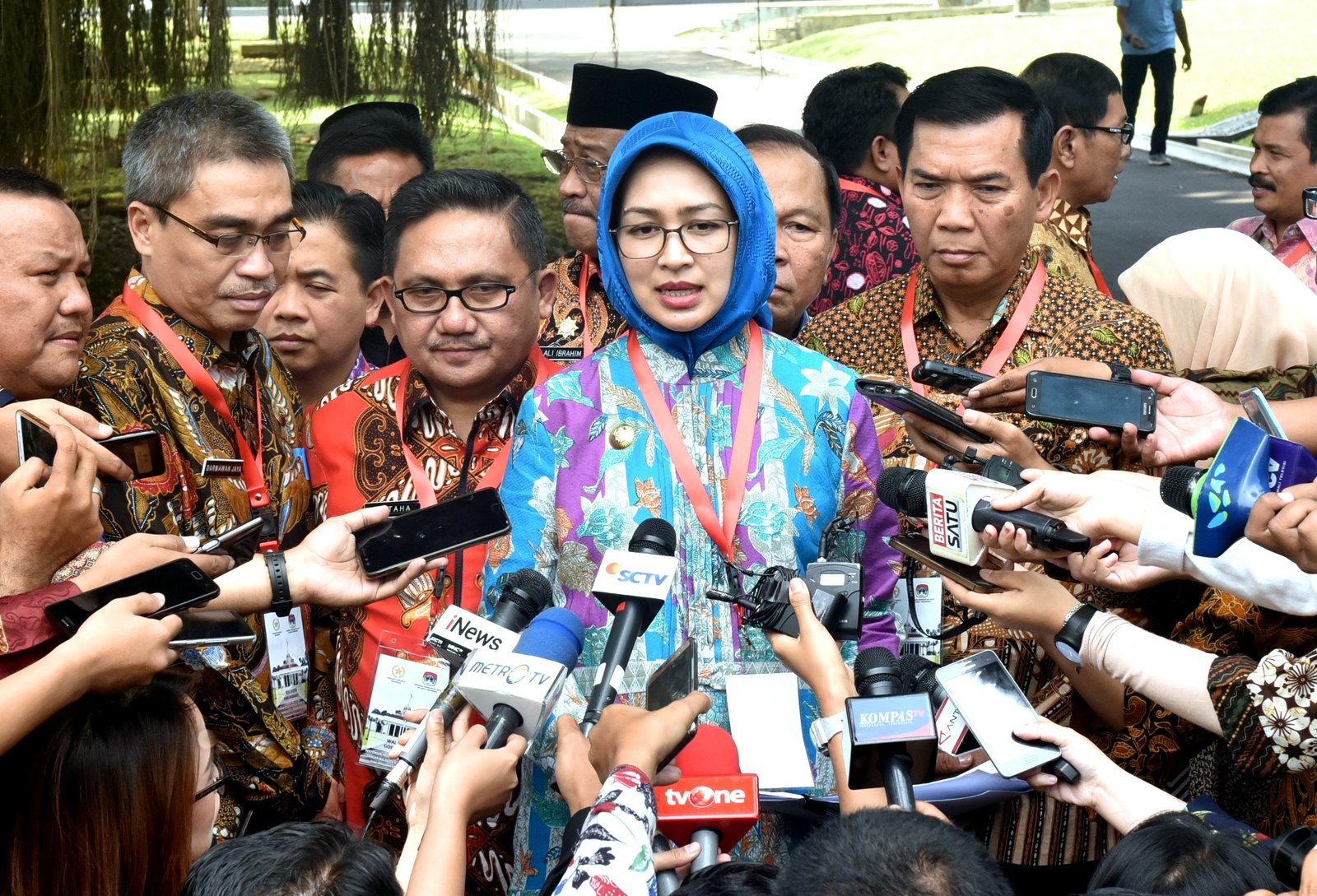 Wali Kota Tangsel Airin Rachmi Diany menjawab pertanyaan wartawan usai bertemu Presiden…