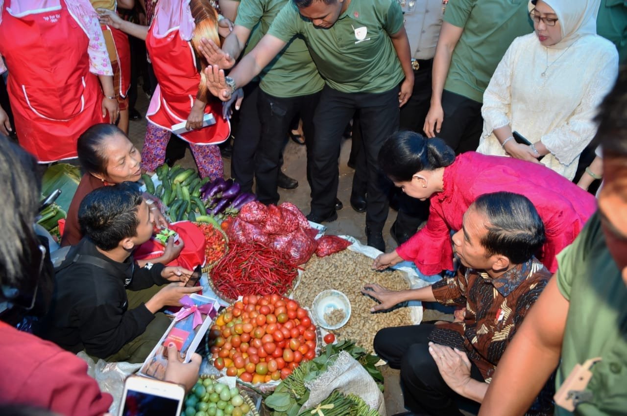 Presiden Jokowi saat secara mendadak mengunjungi Pasar Gede, Klaten, Minggu (15/7) siang.…