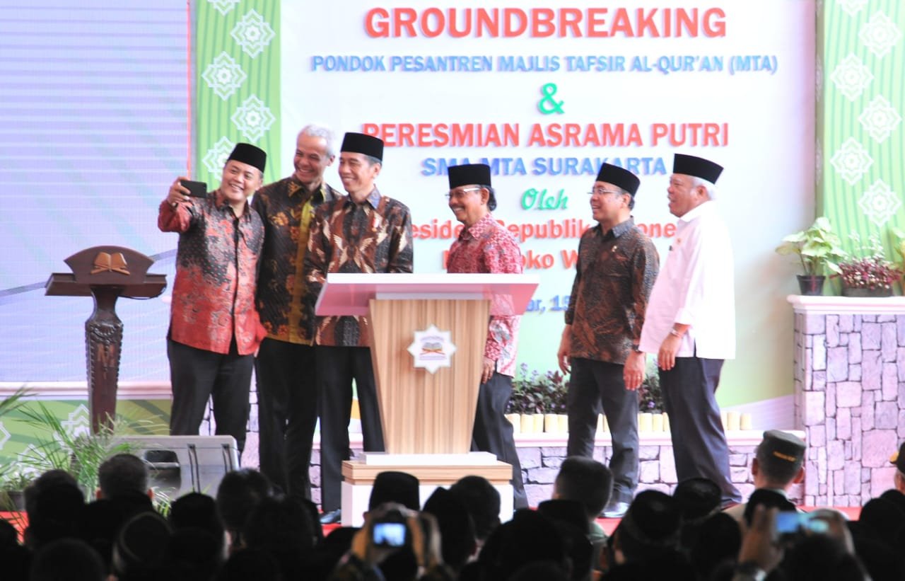 Presiden Jokowi pada peletakan batu pertama pembangunan Pesantren MTA sekaligus peresmian Asrama…