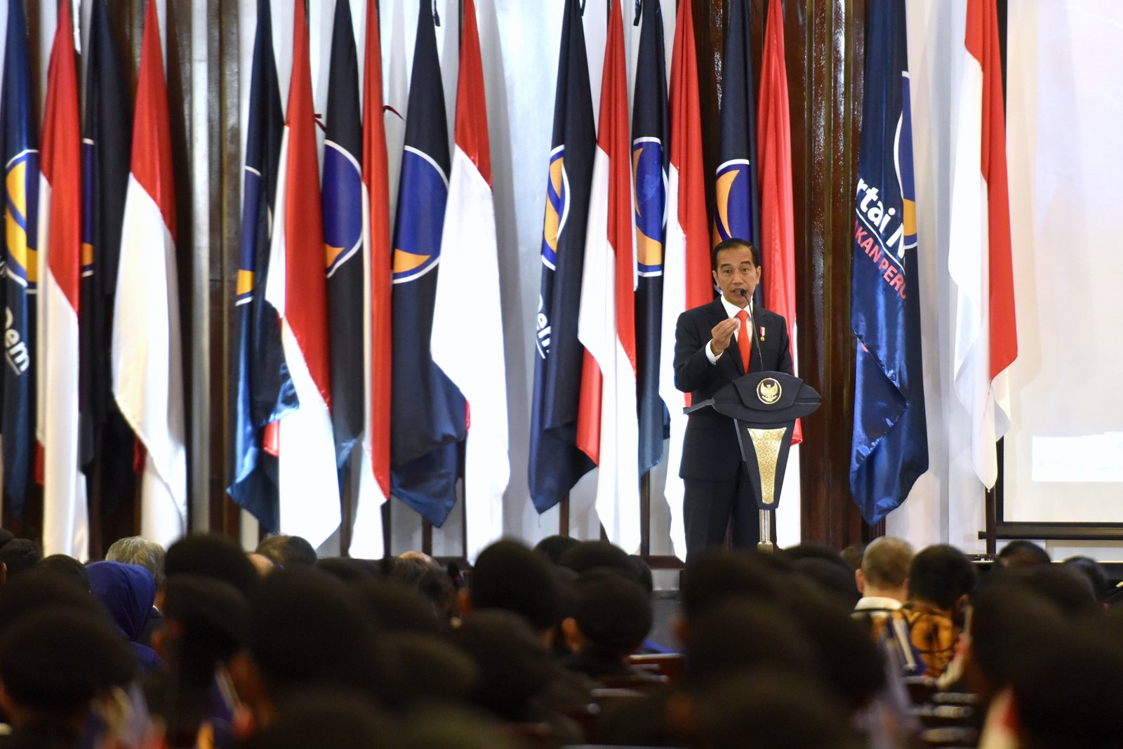 Presiden saat memberikan kuliah umum pada Angkatan ke-2 Pendidikan Bela Negara Partai…