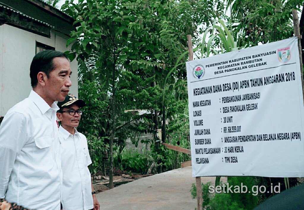 Presiden meninjau pelaksanaan padat karya di Banyuasin, Sumsel, Jumat (13/7). (Foto: Humas/Dindha…