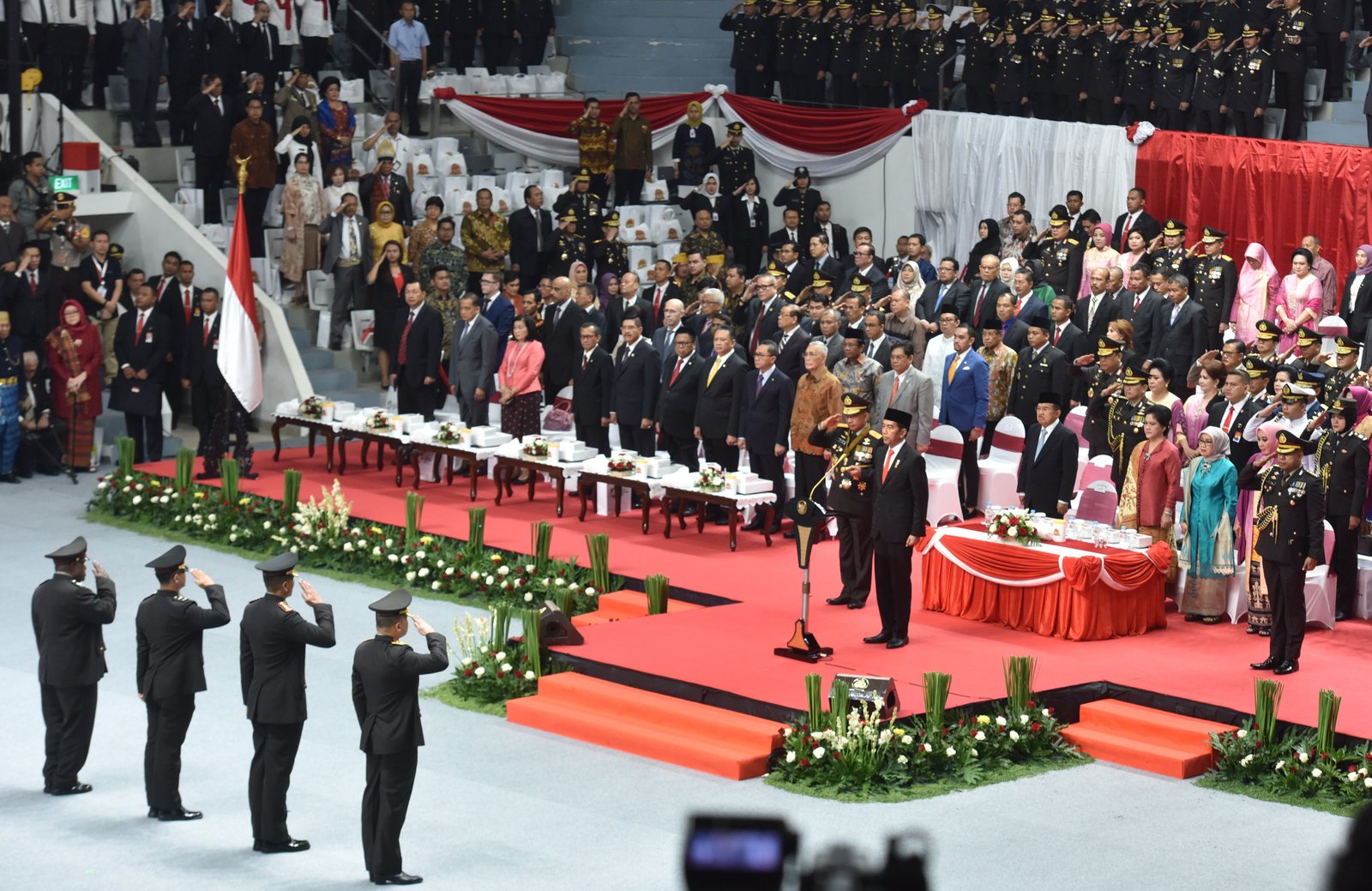 Presiden Jokowi menyampaikan amanat pada Upacara Peringatan ke-72 Hari Bhayangkara Tahun 2018…
