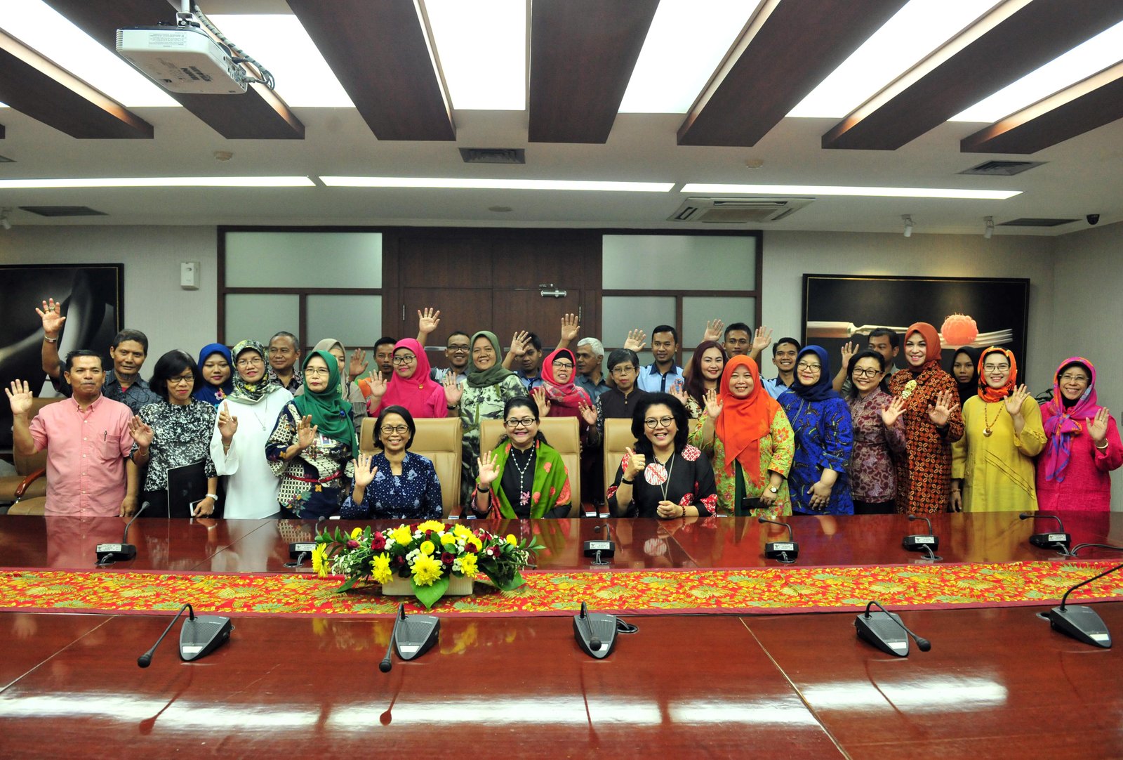 Pembina DWP Setkab Hani Pramono Anung didampingi Waseskab Ratih Nurdiati berfoto bersama…