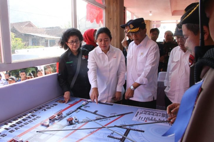 Menko PMK Puan Maharani didampingi Menhub, Menkes, dan Menteri PUPR meninjau jalur…