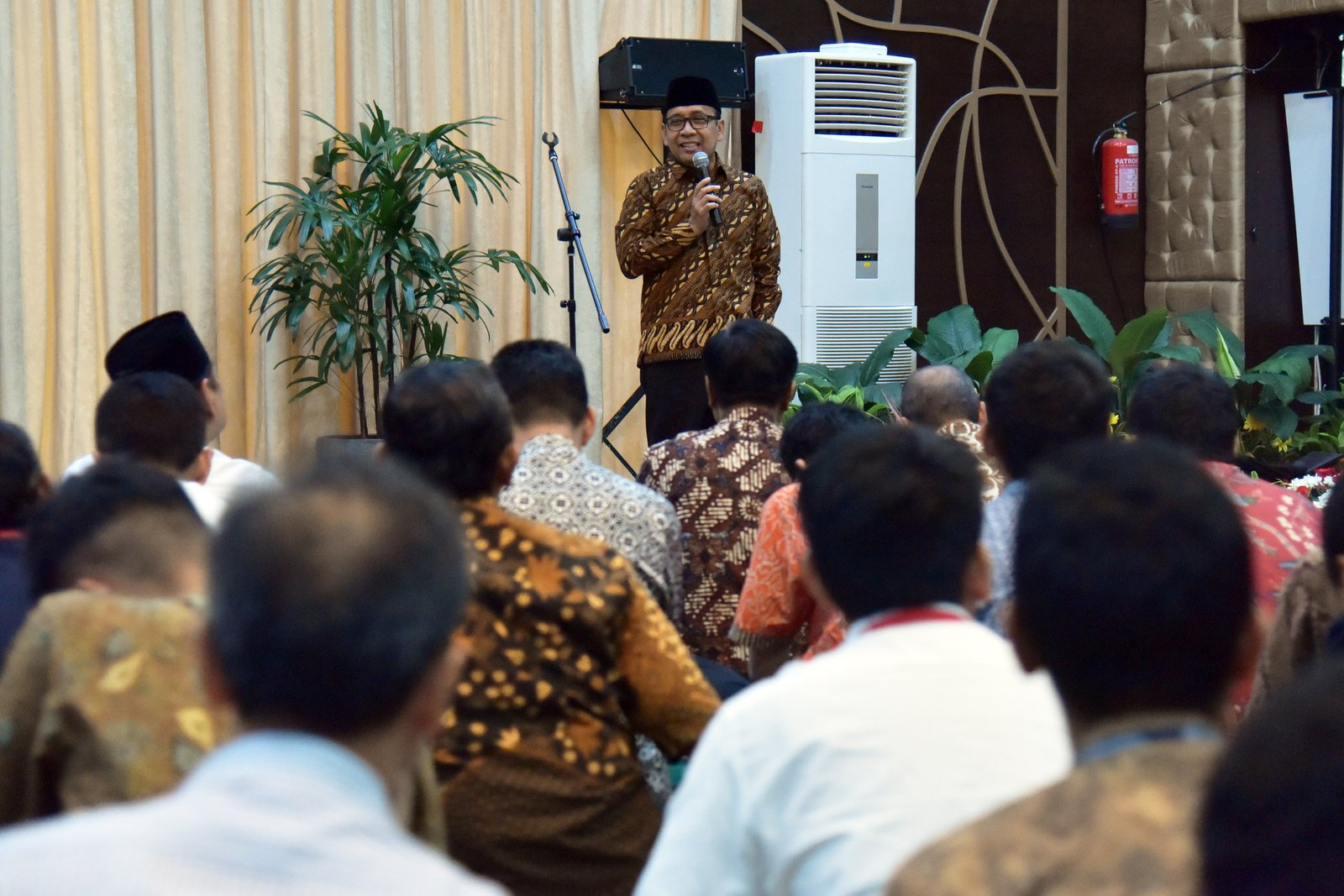 Mensesneg Pratikno menyampaikan sambutan pada buka puasa bersama lembaga kepresidenan, di aula…