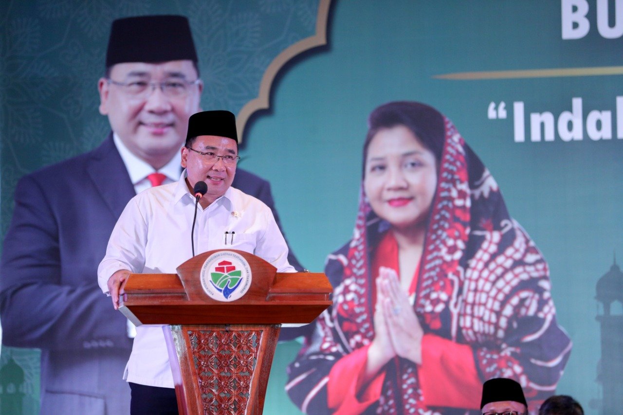 Mendes PDTT Eko Putro Sandjojo saat memberikan sambutan pada buka puasa di…