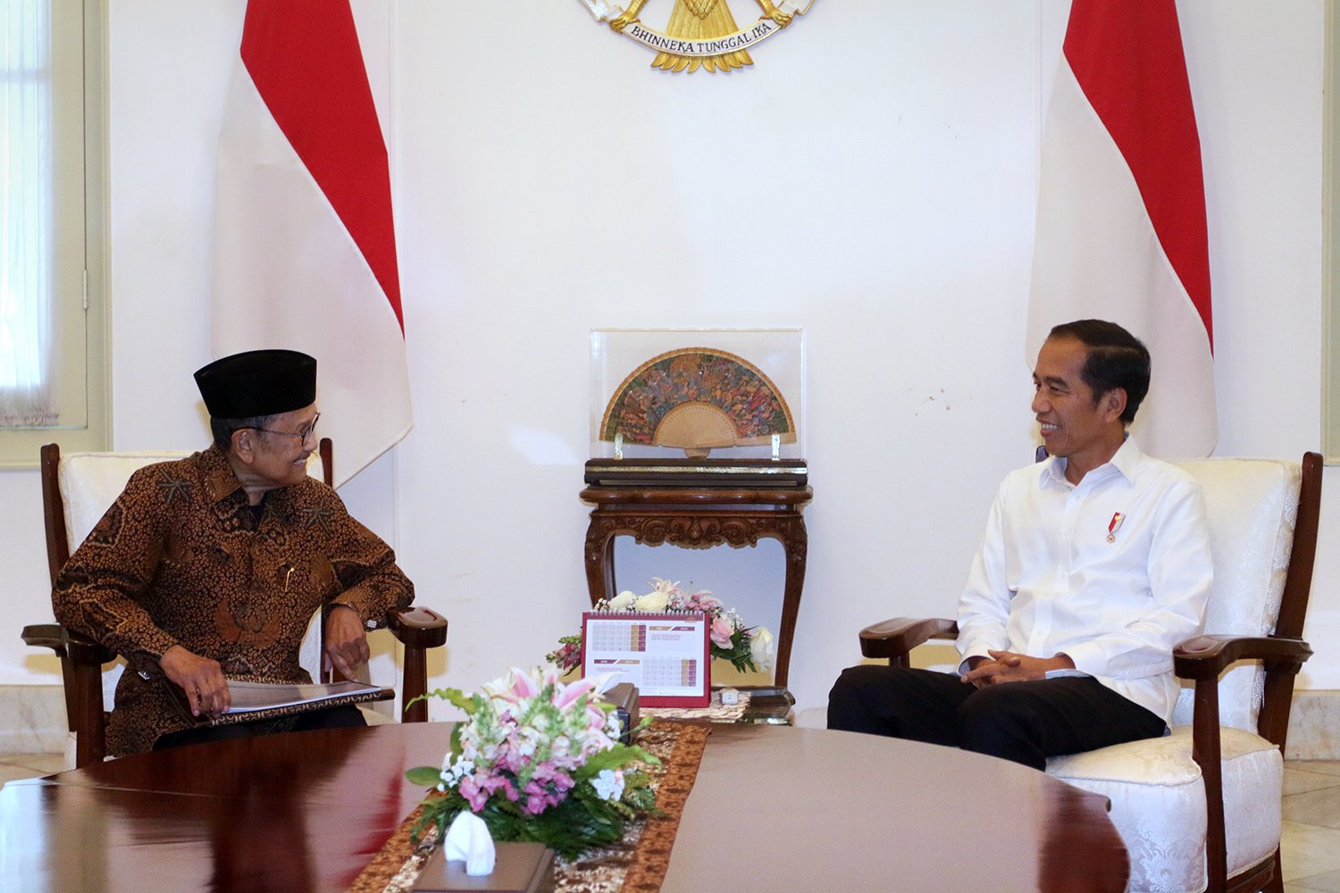 Presiden Jokowi terlibat diskusi dengan Presiden RI ke-3 Prof. Dr. BJ. Habibie,…