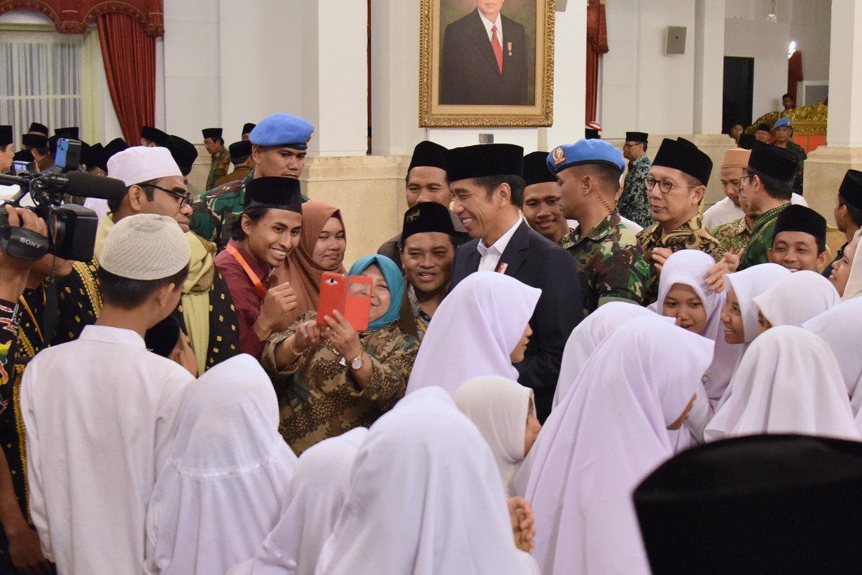 Presiden Jokowi menghadiri acara Peringatan Nuzulul Quran 1440H/2019, di Istana Negara, Jakarta,…