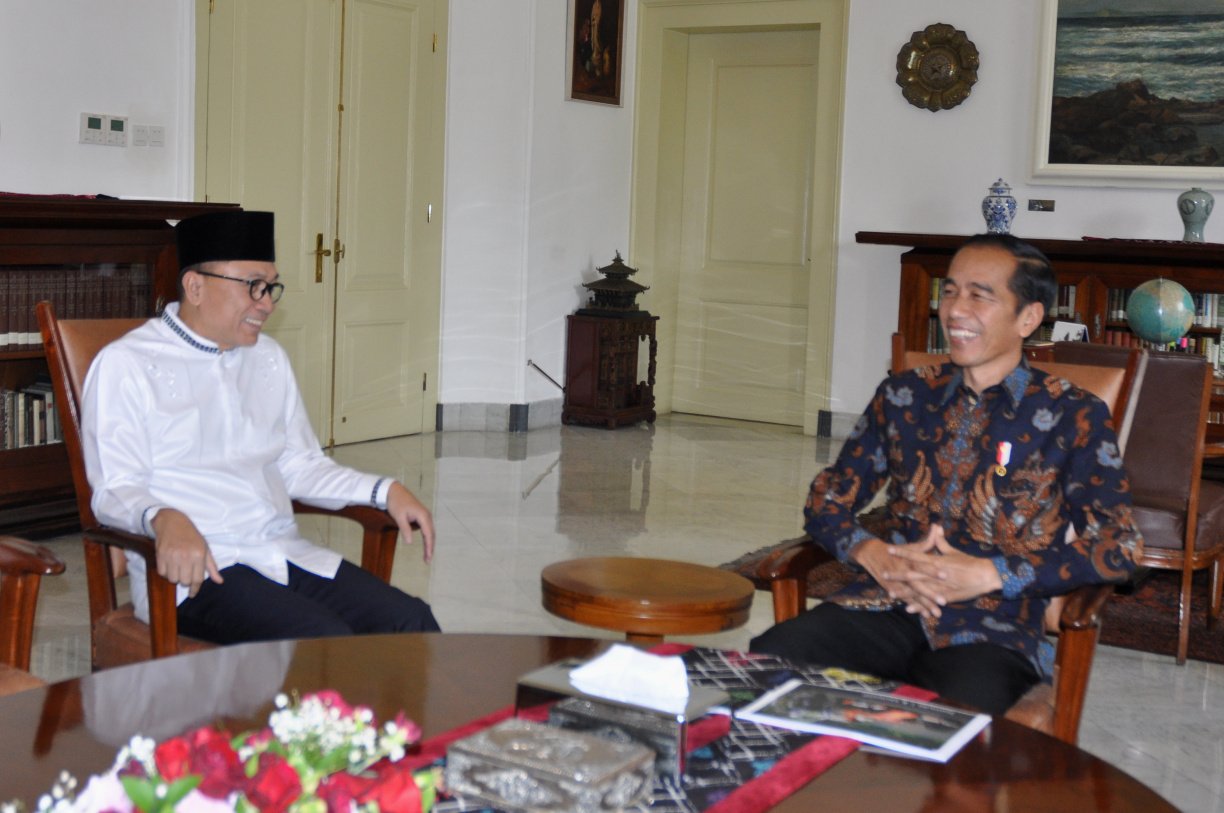 Ketua MPR Zulkifli Hasan bertemu dengan Presiden Jokowi, di Istana Kepresidenan Bogor,…