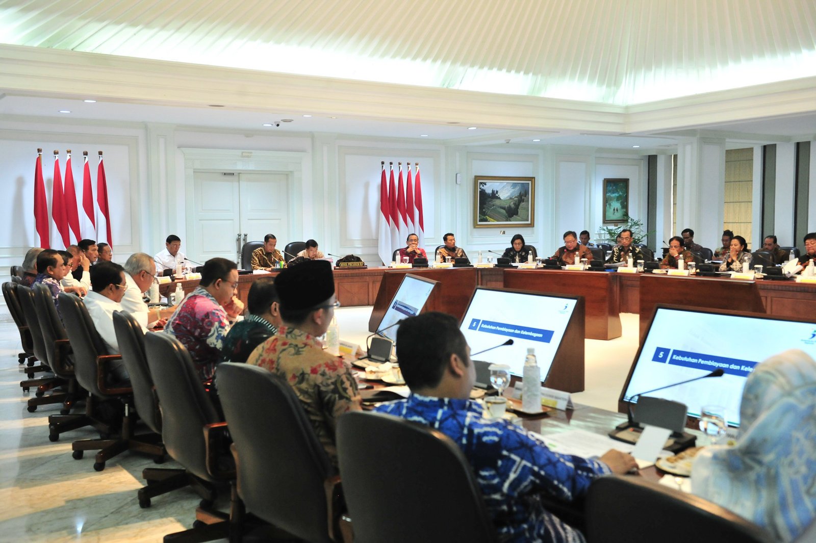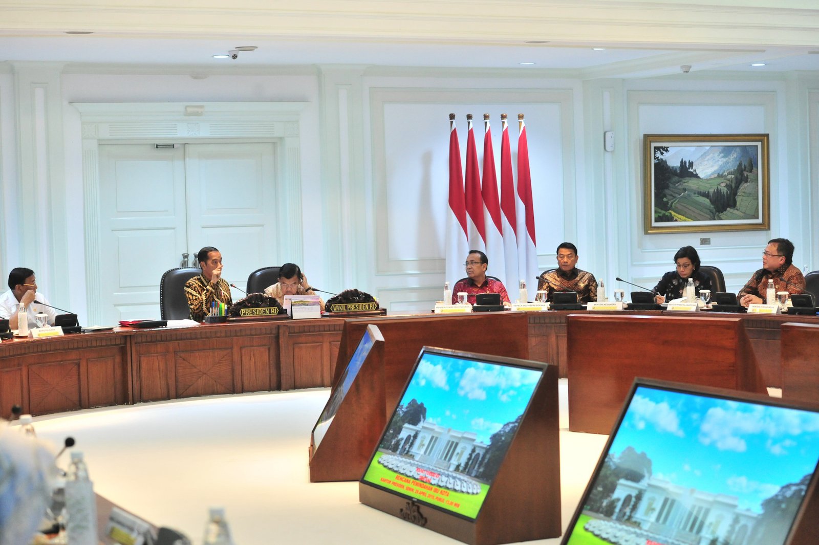 Presiden Jokowi didampingi Wapres Jusuf Kalla memimpin rapat terbatang tentang pemindahan ibu…