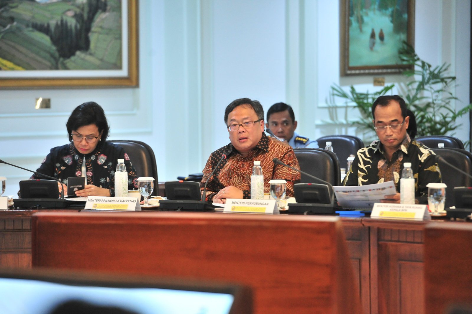 Menteri PPN/Kepala Bappenas Bambang Brodjonegoro saat mengikuti rapat terbatas, di Kantor Presiden,…